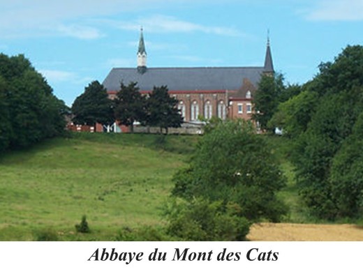 We hebben wat lome benen na onze Picon-pauze en de zwaarste beklimming moet nog komen. Op naar Mont des Cats, een getuigenheuvel van wel 165 meter hoog. Op de Catsberg bij de Abdij hebben we 60km op de teller. Abbaye du Mont des Cats is een cisterciënzerabdij van de trappisten, we houden er een pauze om op adem te komen.