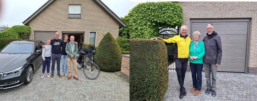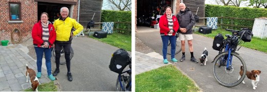 Dat onze gastheer een bezige bij is, ondervinden we, wanneer we het sanitair opzoeken. Franklin is volop deeg aan het kneden en zijn oven aan het opwarmen. “Straks eet je brood van mijn eigen graan”, grijnst hij fier. En jazeker bij het overvloedige ontbijt, genieten we samen met ons gastgezin. Het is ons buikje rond smullen….wat een festijn. Ondertussen krijgen we een geschiedenisles over de streek met sappige verhalen over het drukke leven van ons gastenpaar. Het leven in de Westhoek is boeiender dan je denkt! Zo was Franklin 45 jaar voorzitter van de feestcommissie Pollinkhove. Bij het Davidsfonds, de cultuurraad, de Landelijke Gilde en het VVV Lo-Reninge. En ja, 50 jaar zingend lid van het zangkoor Sint-Bart en lid van de kerkfabriek. Ja hoor, zegt onze gastvrouw lachend, hij heeft meer dan zijn best gedaan! We blijven maar praten en koffie slurpen en zijn er ons niet van bewust dat het half voormiddag is. Opkrassen en afscheid nemen. Mensen hoe zalig kan het zijn bij “Vrienden op de Fiets”. Bedankt familie Delanote en tot later wie weet???