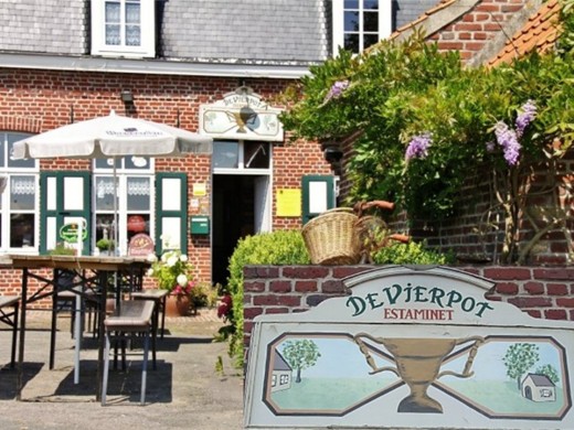 Kort nadat ons gastgezin vertrokken is, rijden wij naar Alveringem-dorp. We vieren samen onze eerste meer dan geslaagde fietstocht met een uitgebreid souper.  Waar kan je dit beter doen dan bij het alom bekende restaurant “’t Potje Paté”. Gelukkig had ik voor onze start een reservatie gedaan, in de ruime serre krijgen wij een mooi plaatsje. We laten het niet aan ons hart komen en bestellen het gastronomische menu met ambachtelijke streekproducten. Het is duimen en vingers aflikken, wat is dat genieten van een gevarieerde mengeling van topkwaliteit aan allerlei soorten vleesproducten. We worden door de gastvrouw op een onberispelijke wijze bedien met de nodige uitleg, echt top. We sluiten onze eetavond af met enkele tripels Sint-Bernardus.
