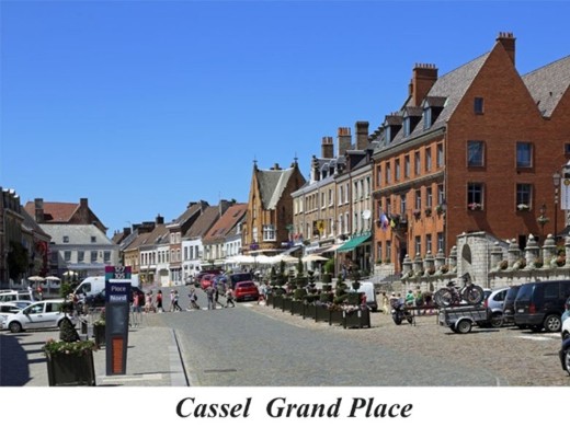 Wanneer we de kasseien op draaien is het hard duwen en puffen. Mijn maat Rik heeft moeite met de steile kasseibeklimming. Wanneer ik het marktplein oprij en mij omdraai is hij niet te bespeuren. Na enkele minuten komt hij rustig tot stilstand net op de plaats waar wij toch een terrasje willen doen. Het doet deugd om hier samen in het zonnetje te genieten van een frisse trippel. Cassel is gelegen op de 176 meter hoge Casselberg, het hoogste punt van de Westhoek. Het is een kleinstedelijk centrum met dagtoerisme. Het charmante versterkte stadje werd in 2018 door het Franse publiek verkozen tot het mooiste dorp van Frankrijk. Er zijn gezellige steegjes en erg smalle straten met een fenomenaal uitzicht, bij helder weer kan je tientallen kilometers ver kijken, tot aan de zee toe.