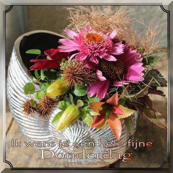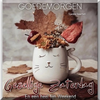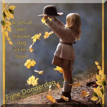 Een Goede morgen .Nu die 2 moeilijke dagen voorbij zijn, zijn we vol goede moed terug op het gewone treintje van iedere dag gestapt ! En .. deze dag is er eentje met een mooi vooruitzicht want we zijn aan het einde van de week en het Weekend staat reeds ongeduldig te trappelen om te starten ! Toch houden we het wat aan de korte kant want na dat stormweer ( gelukkig hier zonder schade ) is het verdraaid geen lottetje als je naast veel bomen woont dus word het Blaadjes samen blazen en is zakken steken tot de volgende ( reeds beloofde ???? )storm op ons afkomt !