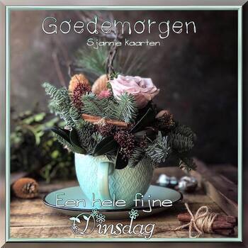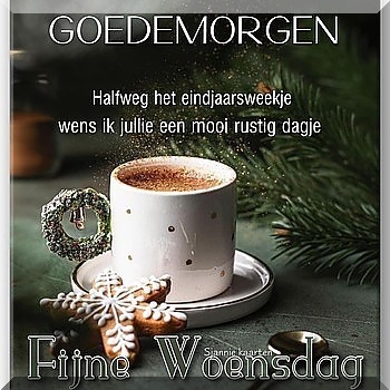 Al is die morgen al ver gevorderd maar .. nu kan voor even als wat de pot op en houden we een korte koffiestop en vlug even rondcrossen op de blog en hier een krabbeltje zetten ! Zo te zien zitten die droge dagen er weer op en we mogen dat mooie veranderen in regenweer. Och zoiets is nog altijd beter dan sneeuw ! Ook al word het voor velen onder ons een binnerzittersdagje maak er het beste van en geniet van de warmte en de kerstsfeer in huis !