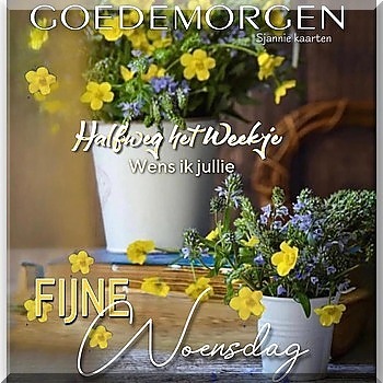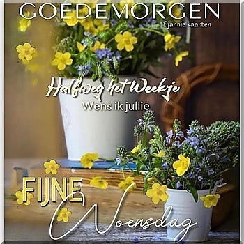 En we zijn alweer in de helft van de week ... verdraaid gaan die dagen toch vlug voorbij ! Durf het vandaag bijna niet noemen " De zon schijntnu " maar zal er maar beter over zwijgen of straks is ze terug wegwe zullen wel zien wat het word ! Wat het ook word wens ik jullie een gezellige dag en geniet zoveel je kan van dat nieuwe dagje !
