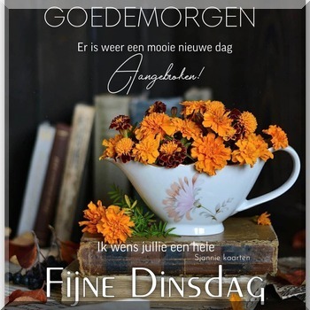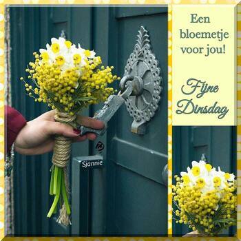 Het is ( hier toch ) een grijze dag daarom proberen we met deze bloemen wat zonneschijn in die dinsdag te steken maar zoals steeds " wat nu niet is - kan nog komen "We kunnen er zelf toch niets aan veranderen maar we kunnen wel hoe de dag ook uitvalt proberen er het beste van te maken en daarom wens ik jullie een gezellige dag met veel...