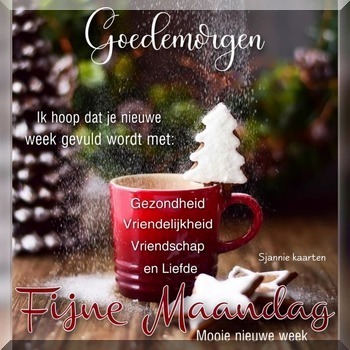 Dat koude Weekend is weer achter de rug ! We stappen weer met volle moed een nieuwe week in , gelukkig zonder sneeuw en wat minder koud ! We zijn weer een dagje dichter bij de komst van de Sint waar die kleine bubbeltjes vol ongeduld naar uitkijken en dat zal hen wel gelukkig maken !Maar als we eerlijk zijn... wij kijken ook wel wat uit naar die feestdagen die op komst zijn maar over zijn we nog niet dus ... koffiestop zit erop dan maar braafjes die Maandag klusjes verder doen ç Geniet van je dag !