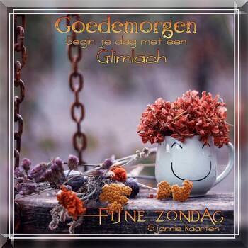 "Begin je dag met een glimlag_" En dat mag en kan zeker op een Zondag en nog zekerder nu we eens niet begroet worden door regen !Oei ... had mezelf voor genomen om niet over het weer te hebben vandaag en ... ben er toch al weer over bezig dus stop ermee !Wens jullie ondanks alles toch een gezellige ZAondag !