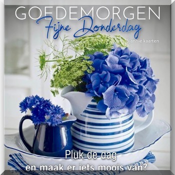 vandaag ! Amaai... wat een beetje zon kan doen met een mens na al dat stormgedoe en regen ... bijna niet te geloven è ! Dus mor gedoe over dat rotweer aan de kant zetten straks boodschappen doen en genieten van een koffietje of thee zonder paraplu ... oef eindelijk ( hoop ik toch ) !Genoeg daarover ... wens jullie dan ook van harte een vrolijke zonnige dag .. geniet van de buitenlucht( die koudere temperatuur nemen we er graag bij ) na al die binnerzitters dagen dat kunnen we goed gebruiken en Geniet ten volle van je dag( zal ik ook doen )!