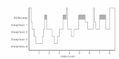 l tot 3 maanden De slaap is nog licht en wordt gemakkelijk verstoord, bv. door lawaai of eigen behoeften, zoals honger. De slaap bestaat uit vele korte slaapcyclussen, waarbij de baby vanuit de lichte actieve slaap even wat dieper wegzakt en vervolgens weer naar de lichte slaap weerkeert. De slaapcyclus bij volwassenen duurt tussen de 90 en 110 minuten, bij een baby is dat ongeveer 45 minuten. Daarvan brengt hij ongeveer de helft door in remslaap (droomslaap). Het duurt tot 1 jaar voor de cyclus zich verlengt tot 1 uur. Geleidelijk aan evolueert het kind naar een slaappatroon met meer diepere slaapfasen. De onregelmatige slaapcyclus van de baby verschilt dus totaal van het volwassen slaappatroon dat een duidelijke structuur heeft en meerdere fasen van diepe slaap vertoont. Het is dan ook onzinnig om het kind in deze fase 'enkele nachten te laten doorwenen' om te proberen het zo in een volwassen slaappatroon te dwingen.