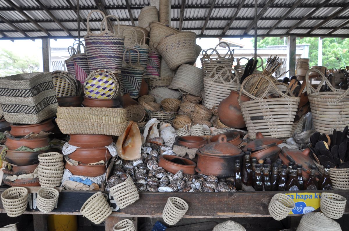 Laatste dag in Lusotho : een kijkje op de zondagse markt, en dan wandelen in de omgeving voor het "museum van het leven". De laatste foto toont twee toeristen bij de plaatselijke kleermaker om een kleine reparatie. Morgen vroeg op voor de res naar Tanga!