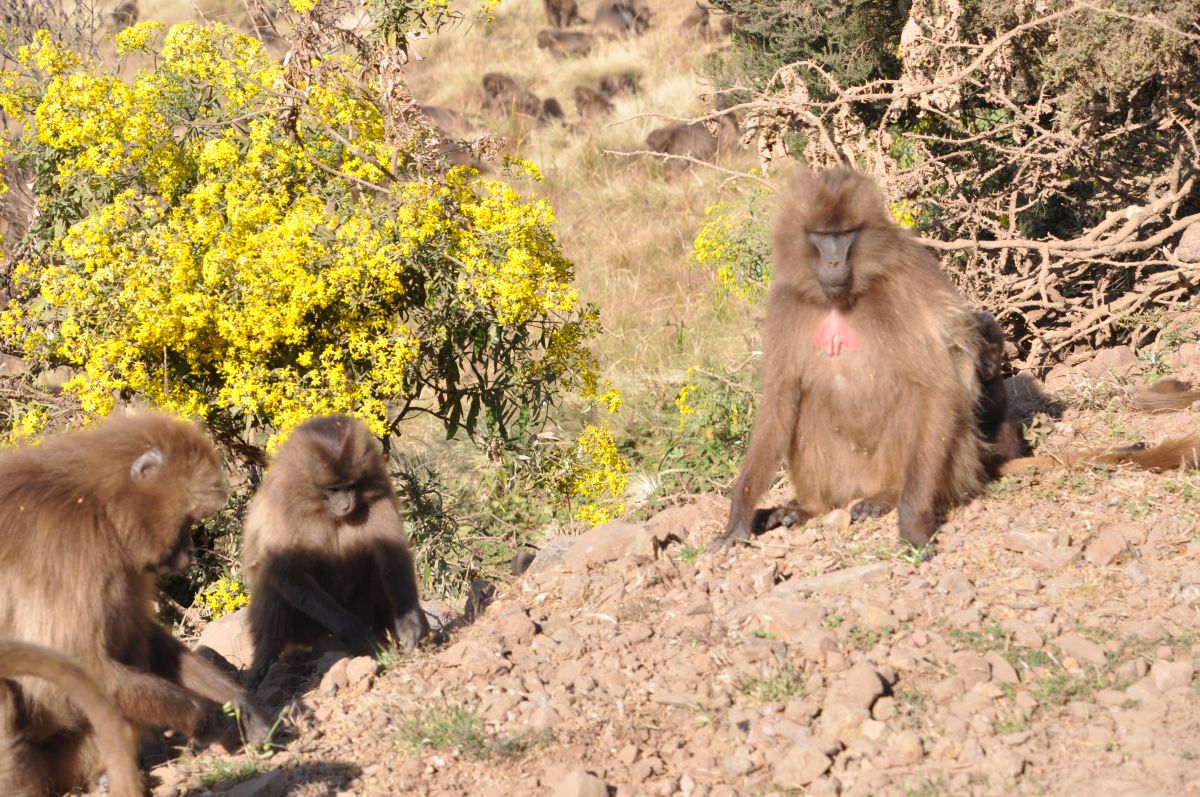 Het was wel Gondar gisteren maar we reden verder via Debark naar de Simienbergen (en daar was geen internet).Het Simien Mountains National Park met het hoogste punt van Ethiopië - 4533m-maar wij gingen tot Sankaber 3250m om onze tentjes op te zetten (het werd erg koud).Onderweg zien we "gelada"apen dus echte wildlife!!