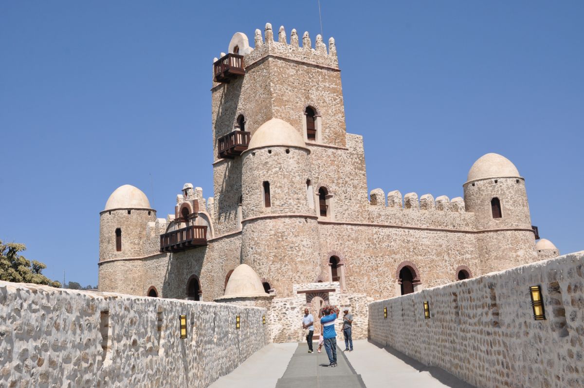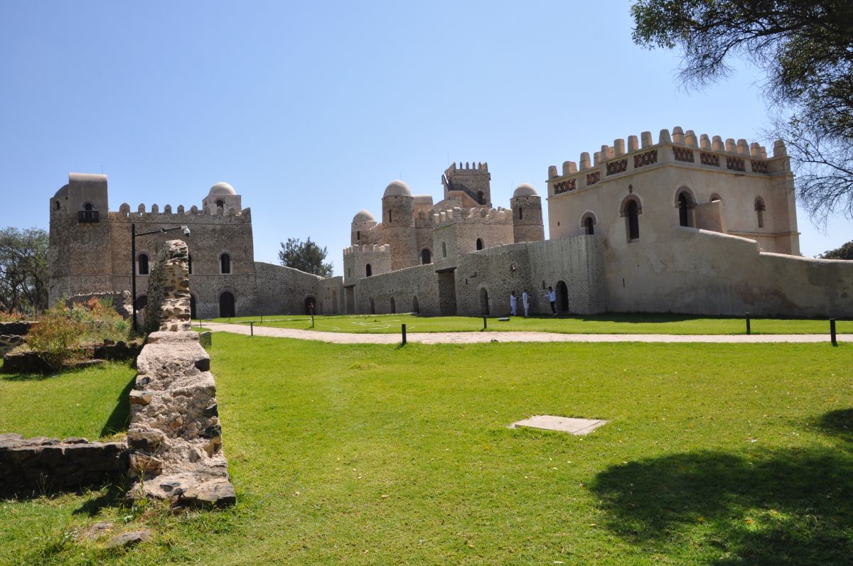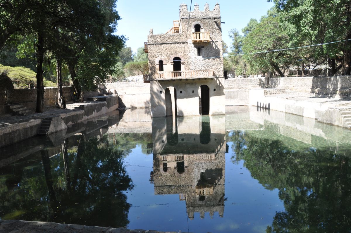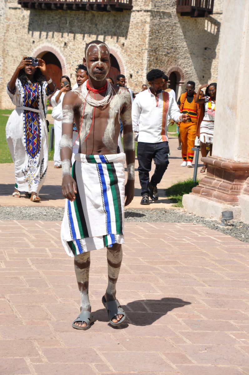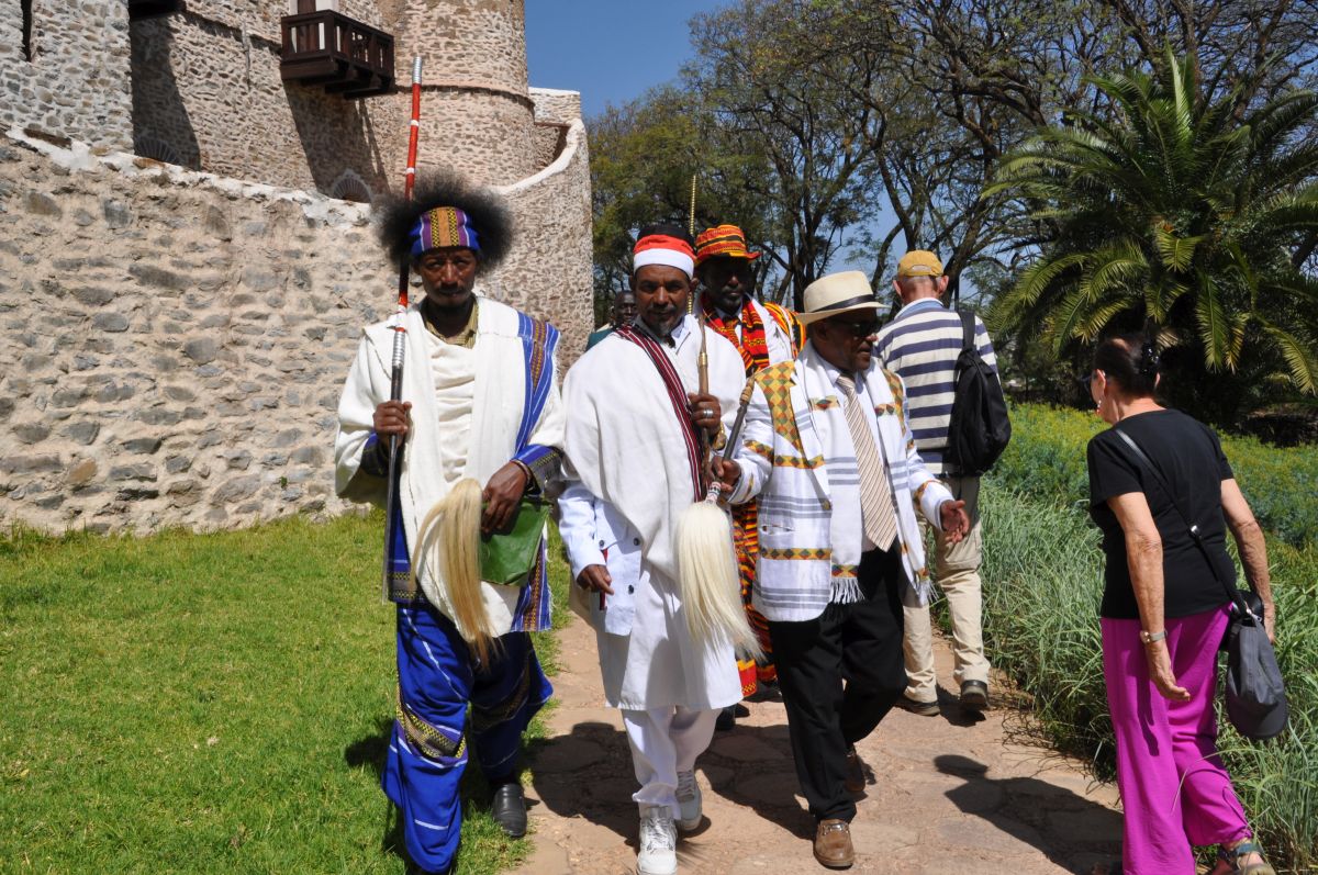 Gondars belangrijkste toeristattractie is Fasil Ghebbi, het koninklijke slot met zes 17de eeuwse kastelen . Even wat geschiedenis : Gondar was in die tijd de hoofdstad van Ethiopië met verschillende koningen. We besparen u de namen. Fasilida bouwde er een kasteel en nadien waren er nog vele andere koningen (vermoord, vergiftigd, gewurgd, enz.) Maar voor ons was de grootste attractie de verschillende etnische bezoekers die hier waren omwille de komende Timkat (zoek maar eens op) . Nadien Fasilida's Pool waar de 19 de januari een byzonder festival zal zijn. 's Namiddags Ras Gimb waar keizer Haile Selassie en zijn vrouw Menen vijf keer verbleef tussen 1946 en 1970. Morgen vliegen we naar Lalibela.