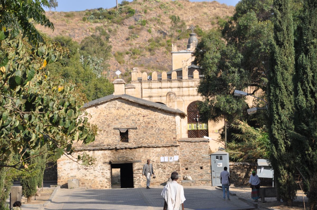 De rotskerken in de Tigray, er zijn er zo meer dan 40. Wij bezochten er drie van :Chirkos ,de oudste, Abraha we Atsbeha met de mooie fresco's en Abuna Abraham Debre Tsion dat we bereikten na een duizelingwekkende klim. We logeren in Hawzien.