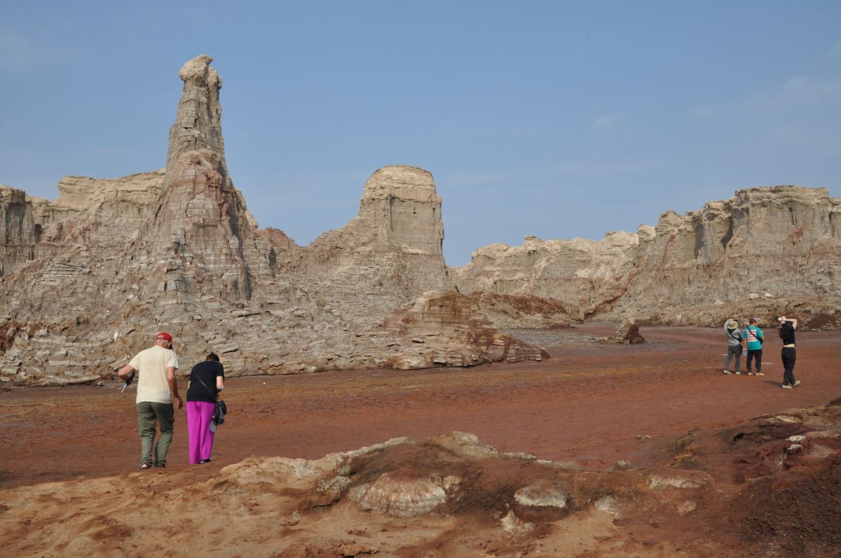 In Mekele (de tweede grootste stad van Ethiopië ) waren we getuigen van "Timkat" het religieus grootste feest over Epiphanie (de doop van Jezus in de Jordaan). We werden ook gedoopt! Fantastisch om in die massa VIP behandeling te krijgen. Dan daalden we af naar de Danakil Depression (155m onder zeenveau en erg warm) Voor we slapen gaan een zonsondergang op de zoutvlakte (tot 1 km diep)..en dan naar ons hotel (zie later)