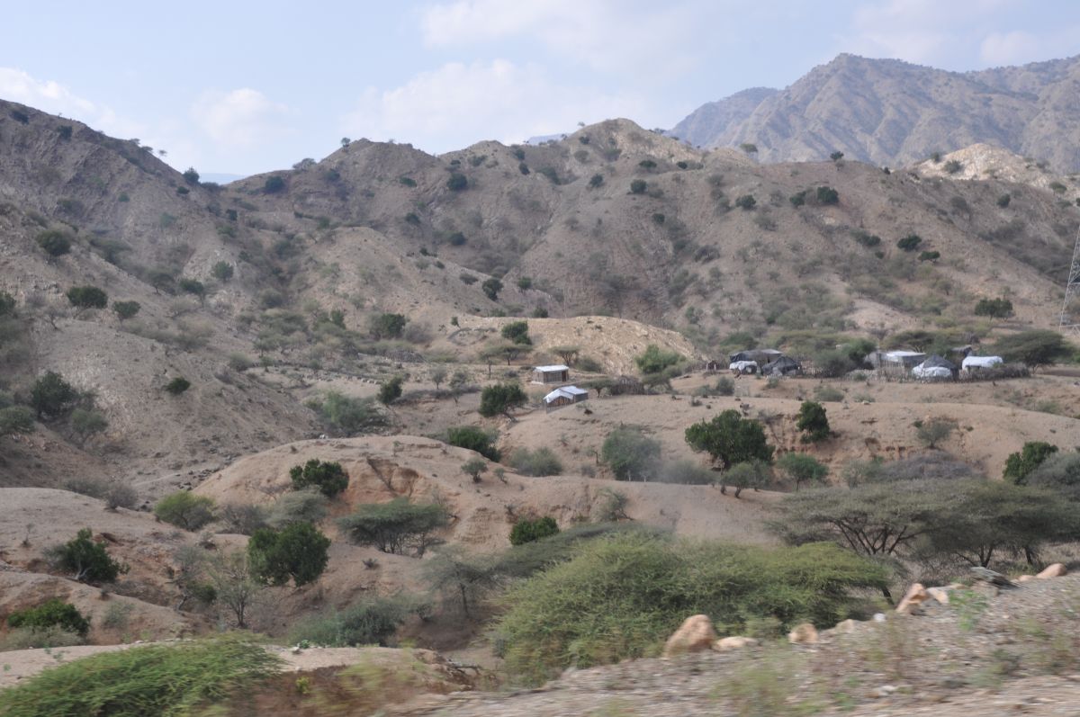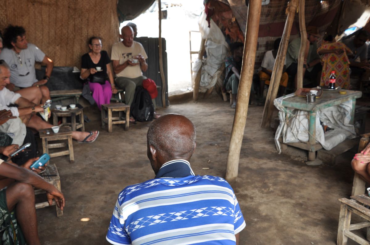 Aan de voet van Erte Ale (de vulkaan) : onze slaapkamer, het restaurant. Bij het krieken van de dag trok één van ons trio de vulkaan op...wie zou dat zijn? De zonsopgang was er matig en na het ontbijt terug sjokkelen naar Mekele. Onderweg zie je de woningen van de Afars, de oorspronkelijke nomaden bewoners van de Danakil.Terug in de stad: onze slaapkamer, het restaurant!