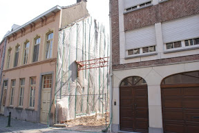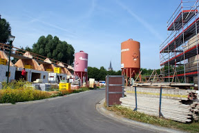 Met het systeem van op voorhand gemetste muren, waarvan ik hier al sprak, zet men op enkele weken tijd hele rijen huizen. Zoals hier op Ghevers waar de nieuwe huizen bijna niet meer te tellen zijn.