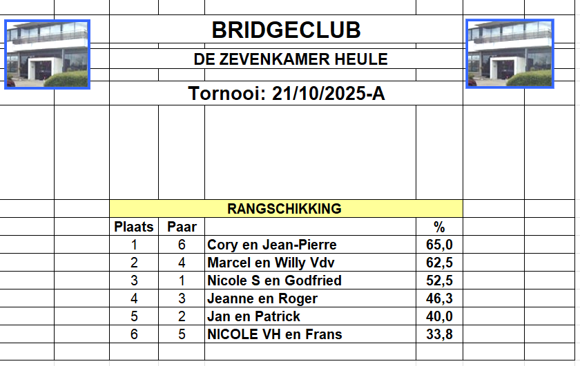 BRIDGECLUB  DE ZEVENKAMER HEULE