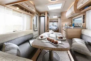 Een lange keuken en de zitbanken van de zitgroep zijn nieuw. Het meubilair met een mooi houtdecor is zeer modern ontworpen. Het tafelblad kan half wegklappen voor een betere doorgang naar de stuurcabine. Bij de halfintegrale verschijnt de Tessoro T 425 met stapelbedden in een hoek achterin. Vooraan is een hefbed boven de zitgroep met comfortabele zijzitbanken. Een nieuw ontworpen sanitair zien we net achter de zitgroep. Een afzonderlijke douchecel ontbreekt zowiezo niet.