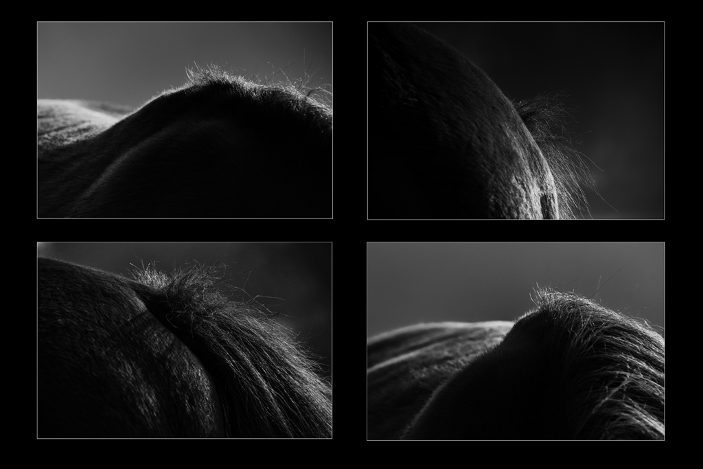 Vandaag stond volledig in het teken van kijken, voelen en genieten van de kleine details. Soms hoef je niet het hele plaatje te zien om de schoonheid te ervaren – een sprankeltje manen in het licht, - de paardenstaart - de ronde lijnen van een gespierde hals, of een zachte vacht die oplicht tegen de achtergrond. Met mijn camera ben ik dichterbij gekomen dan ooit, en heb ik geprobeerd de essentie van de Haflingers vast te leggen: kracht en zachtheid, elegantie en eenvoud. In silhouetten en contrasten ontstaan nieuwe beelden – bijna abstract – die je uitnodigen om anders te kijken.