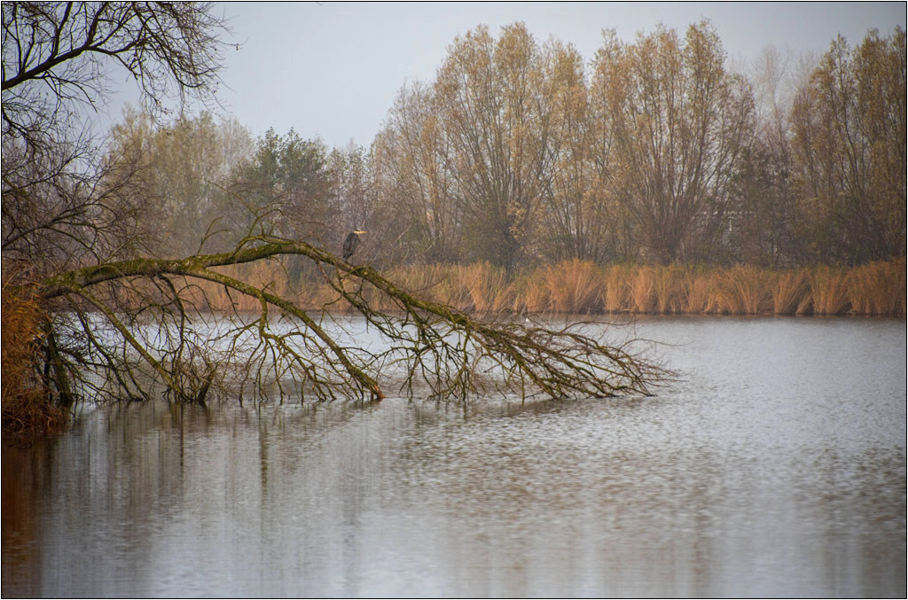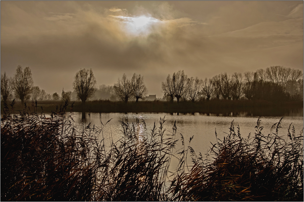 Tijdens mijn bezoek aan het krekengebied maakte ik deze foto aan de Hollanderskreek. Het was een mistige, wat sombere dag, maar dankzij de juiste witbalans kwam er toch subtiel kleur in het beeld. De warme tinten zijn puur natuur — dit is geen sepia-bewerking — en precies die sfeer trok me aan.