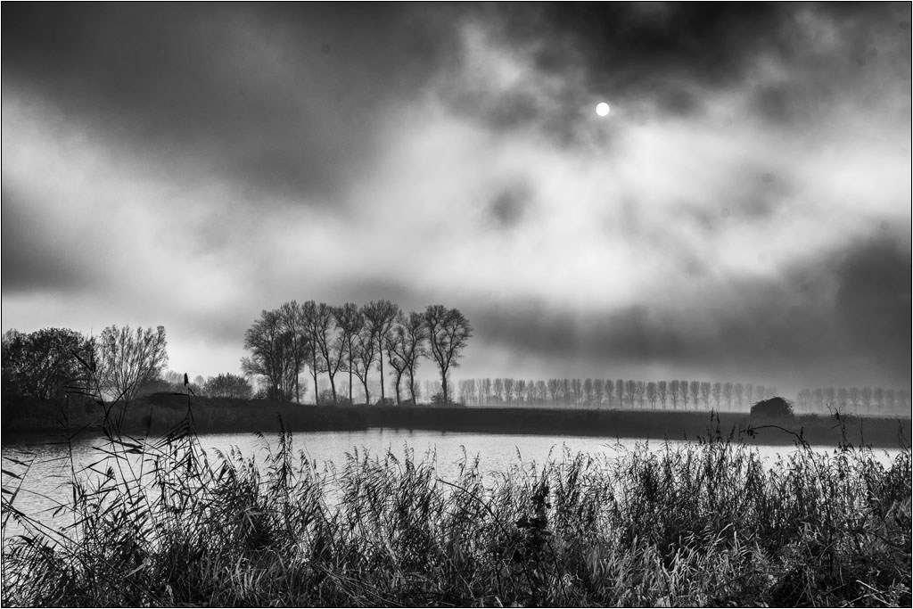 Sint-Pietersdijk is een nieuwe plek met fotografische mogelijkheden die ik ontdekt heb na vele bezoeken aan de Kreken. Deze kreken zijn een uitloper van het Zwin, net over de Nederlandse grens in Sint-Kruis. Deze foto heb ik omgezet naar zwart-wit, waardoor de lucht nog dramatischer wordt en de bomen bijna lijken alsof ze met Chinese inkt zijn getekend.