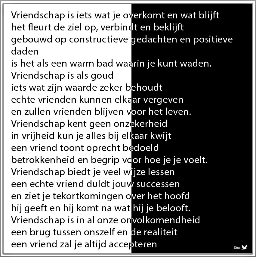 Klik hier om een link te hebben waarmee u dit artikel later terug kunt lezen.Vriendschap in wit zwart en omgekeerd.