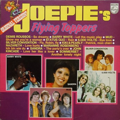 De compilatieplaat 'Joepie's Flying Toppers' kwam dan weer uit België, met 12 grote hits uit 1976. Die was iets goedkoper dan de vorige want ik moest er slechts 225 BEF voor neertellen!