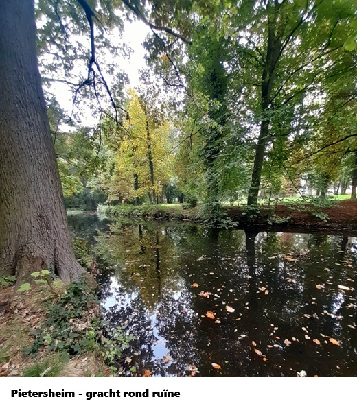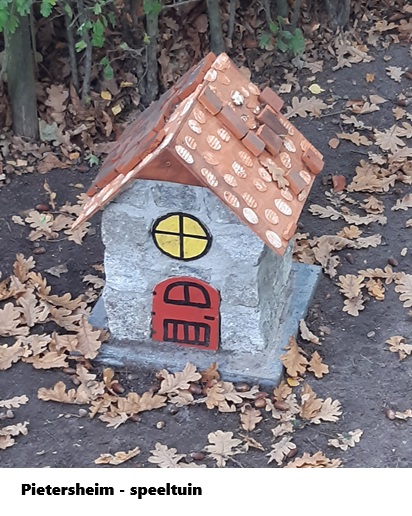 Uiteraard kwam ik ook vandaag in Pietersheim. Zo langs dat kabouterhuisje en doorheen de burchtruïne wandelen, is altijd mooi meegenomen. Terugkeren deed ik via de Koning Albertlaan en mijn bank. Verder is er vandaag niet veel bijzonders te vertellen, zij het dat ik vanmorgen geregeld gestoord werd tijdens mijn werkzaamheden buiten. De overbuurman en een der buurvrouwen, kwam 'n praatje slaan. Moet toch kunnen ....