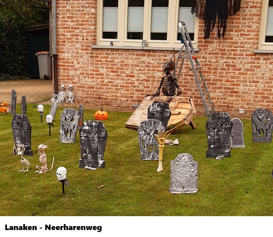 Terugkeren deed ik via de Merodelaan en de Broekstraat. En halloween, ... het zit er aan te komen. Deze mensen hebben wel erg goed hun best gedaan om de boel op te smukken.