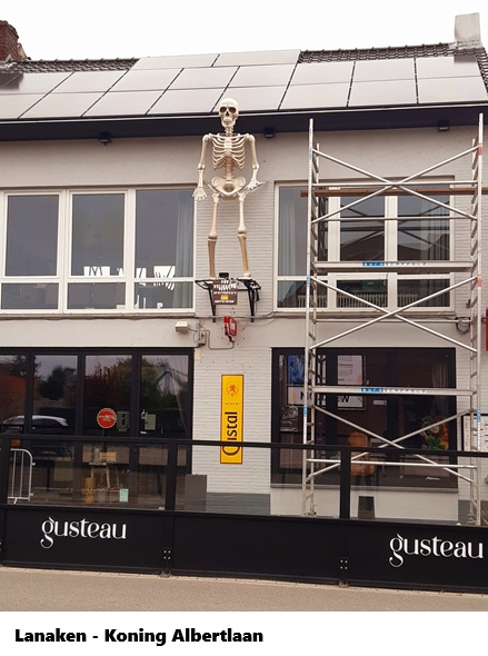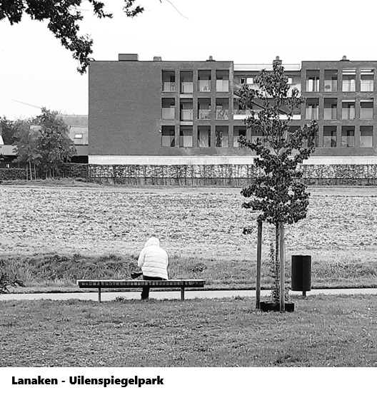 Terugkeren deed ik via de Konig Albertlaan waar brasserie Gusteau wel 'n heel groot geraamte geplaatst heeft aan de gevel. De laatste foto in het park heb ik bewust in grijze tinten gezet, typerend voor het grijze weer van de laatste dagen.