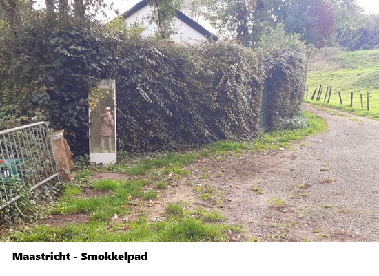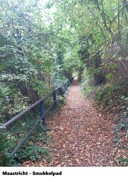 Na het middageten wilde ik nog eens naar Maastricht wandelen. Ik heb de keuze tussen verschillende route's, ik koos nog eens voor het Smokkelpad. Recent stond dit pad - samen met vele andere paden en wegeltjes - nog in het nieuws. Ze hebben allemaal 'n officiële naam gekregen van het gemeentebestuur. Ik wilde eens gaan kijken of het nieuwe bordje met de naam erop, al geplaatst was. Dat blijkt nog niet het geval of ik moet er overheen gekeken hebben.