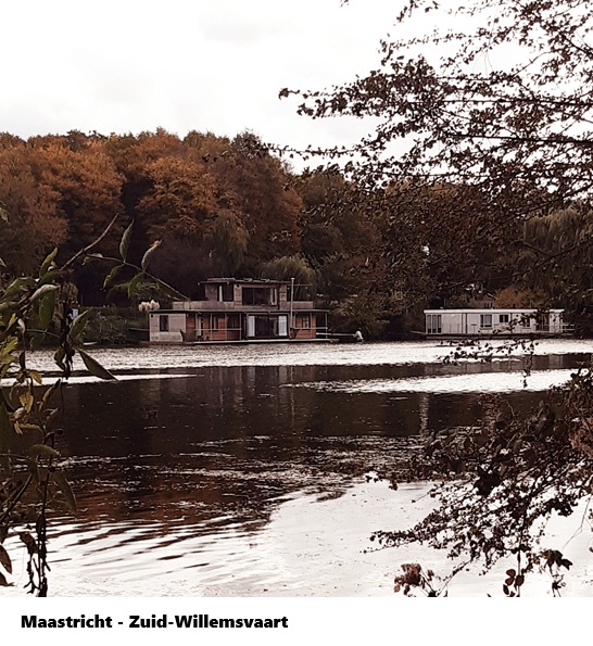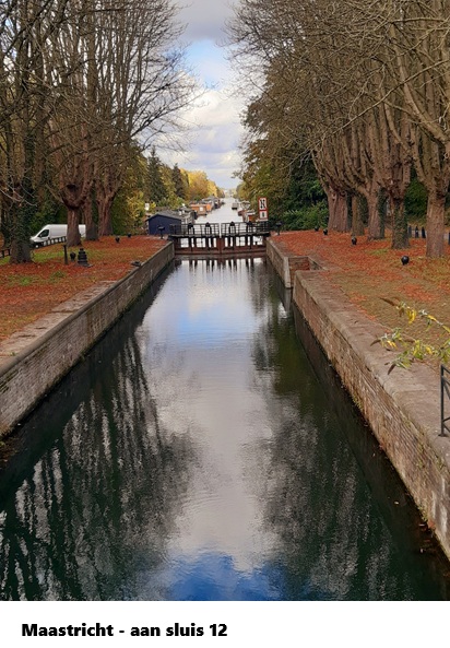 En dan mijn wandeling, in de namiddag zou het 'n tijd droog blijven, misschien 'n goed idee om naar Maastricht te wandelen en met de bus terug te keren. Ik vertrok langs het kanaal waar ik die visser gisteren al had opgemerkt. Aan de Maas heb je dan 'n goed zicht op de kerk en het kasteel van Borgharen. Kort aan de Noorderbrug ging ik even linksaf, de Pastoor Moormanstraat in en dan dat brugje over.