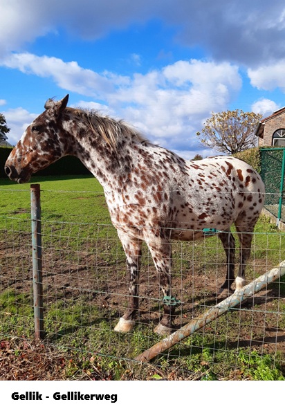 Op dat punt zat ik nog maar aan goed 5 km, ik wilde mijn tocht vandaag iets langer maken. Via de Dorpsstraat wandelde ik naar de Gellikerweg tot aan de grens met Eigenbilzen. Daar zag ik dat mooi gevlekt paard staan. Juist op de grens met Eigenbilzen, ben ik links afgeslaan, de rode route volgend die doorheen de velden loopt. Deze veldweg komt uit op de Boonakkerstraat, de weg langs het Albertkanaal.