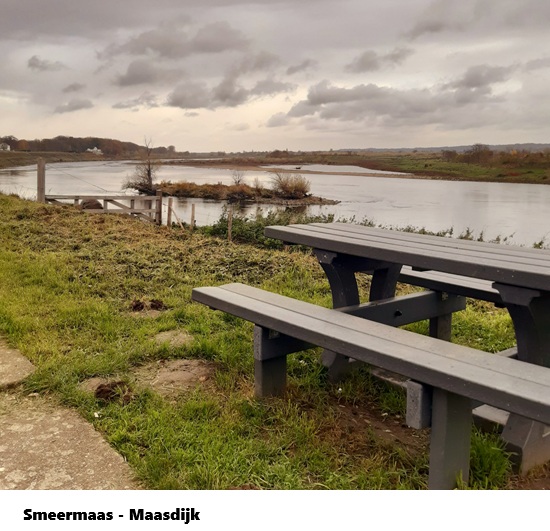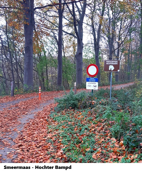 Ik vertrok naar Smeermaas om daar aan de Maasdijk, de loop van de Maas te volgen tot aan het begin van Hochter Bampd. Ik had gehoopt wat runderen en/of paarden te zien in dit natuurgebied, maar de dieren hebben nog te veel natuurlijk voedsel en zijn dan ook vooral aan de waterkant te vinden. Als het kouder wordt, dan krijgen die dieren extra voedsel en dan zijn ze verplicht om tot aan het fietspad te komen waarbij je ze dan van kortbij kunt bewonderen.