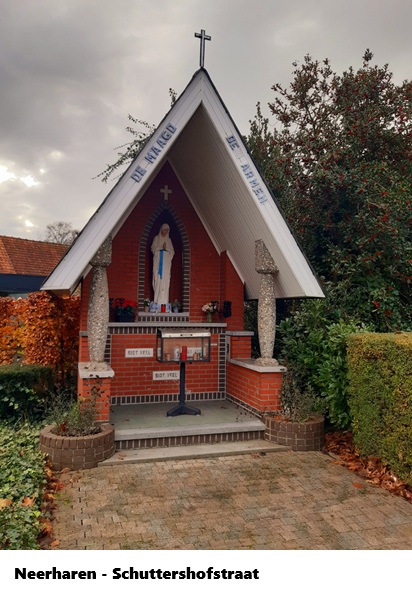 Boven op die laatste helling, ging ik linksaf naar Scheulder, 'n gehucht van Eijsden-Margraten. Daarna kwam ik in het volgende gehucht, Ijzeren, maar dit hoort bij Valkenburg. En als ik dan denk dat ik alle kapelletjes wel gezien heb intussen, dan vergis ik mij. De Mariakapel in Honthem stond nog niet op mijn lijstje. Deze werd gebouwd in 1924 op initiatief van de buurtbewoners en in 1999 hersteld, wederom door deze buurt. Honthem is trouwens 'n buurtschap, horende bij Eijsden-Margraten en telde in 2007, 120 inwoners.