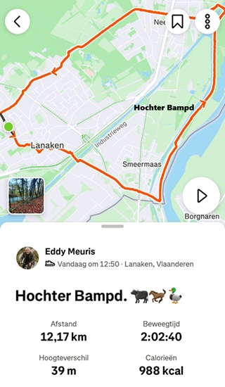 Het was weer 'n goed gevulde dag. Deze voormiddag zijn we in Genk gaan shoppen en deze namiddag heb ik 'n langere wandeling gemaakt. Gezien het droog zou blijven, had ik goesting om de wandeling Veldwezelt - Maastricht - Smeermaas te maken zonder in het centrum van Maastricht te moeten passeren. Ik had gegokt op 'n kleine 14 à 15 km. en dat is het ook precies geworden.