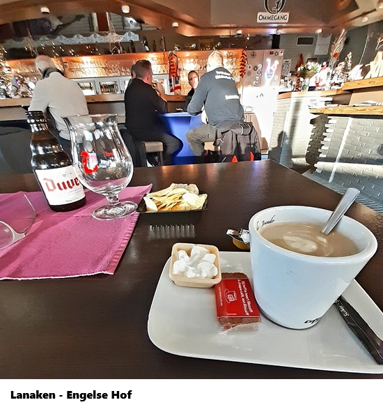 Iets verder dan die manège, kom je dan op de grote weg naar Zutendaal. Tegenover de kerk nam ik mijn pauze en zeg nu zelf, waar kun je voor de prijs van 2,50 euro zo'n uitgebreide koffie versieren?? De zaak zat dan ook bomvol.