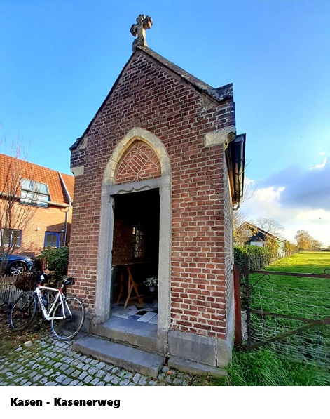 Eens de brug over, kom je in Stein en wat verderop in Geulle. Daar heb je de Sint Martinuskerk. De laatste verbouwing dateert van 1919-1920. Maar delen van de kerk zou al véél ouder zijn. In Kasen, ’n buurtschap van Berg en Terblijt, horende bij Valkenburg, staat deze O.L.Vrouwekapel. Kasen telde in 2023 driehonderd inwoners. De kapel is van 1880. Vandaag volgde ik het fietsroutenetwerk en dat bracht mij oa. op de Kloosterberg in Bunde en naderhand op de Geulhemmerberg in Berg en Terblijt. En die grotten, die kom je in onze contreien op vele plaatsen tegen. Deze weg loopt trouwens naar Valkenburg.