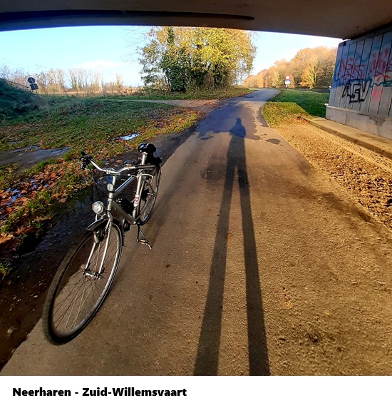 In de namiddag ben ik toch even de deur uitgetrokken om 'n kleine wandeling te maken. Ik vertrok via de Sportoase naar de brug van Briegden. Deze stak ik over om vervolgens naar het jaagpad te stappen langs het Albertkanaal. Je komt dan onder de oude ijzeren spoorbrug door. In Gellik moest ik uiteraard terug omhoog om langs de andere kant terug te keren via de Boonakkerstraat.