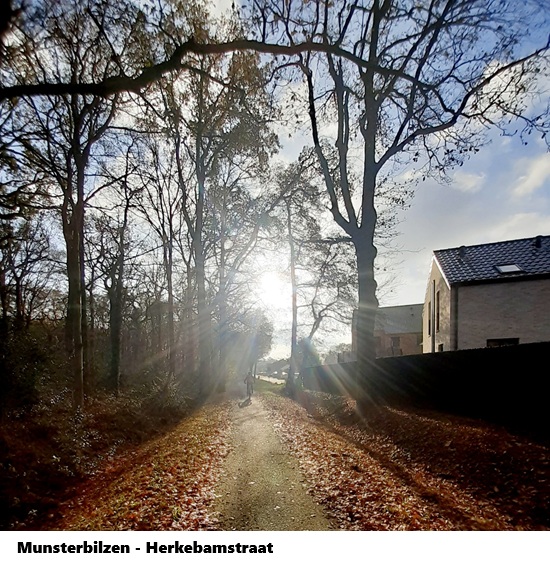 Ik wandelde deze voormiddag richting het bos met vertrek via de Pannestraat. Het viel mij op dat aan deze kant van de grote weg naar Zutendaal, er op diverse plaatsen winterse neerslag te zien was. En eens ik de grote weg overgestoken was, voorbij het Rust- en Ziekenhuis, waren die witte plekken verdwenen.