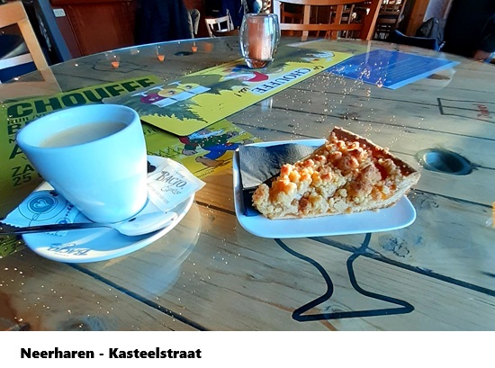 Terugkeren deed ik via Rekem (Patersstraat nu en toen) en Neerharen waar ik bij Mesjeu 'n lekker stuk vlaai ben gaan eten, abrikozen met knubbelkes, koffie en vlaai voor 5,00 euro. Tenslotte reed ik nog doorheen Smeermaas en langs de Zuid-Willemsvaart om uiteindelijk net voor 16u00 terug thuis te geraken. Nu ik dit schrijf is de duisternis al helemaal ingevallen. Zo vrienden, tot morgen alweer.
