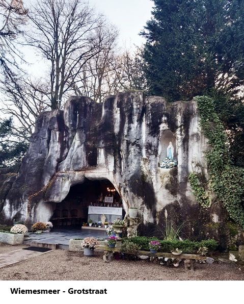 Daarna fietste ik doorheen het gehucht Eik om vervolgens richting Zutendaal te rijden. En dat de zon van de partij was, dat zie je op de foto's. Eens ik in Zutendaal was, reed ik door naar de Wiemesmeergrot aan de Grotstraat. Ik heb deze keer eens wat meer tijd genomen om het Mariapark wat beter te verkennen. Je kunt er zelfs buiten 'n Kruisweg volgen. Verschillende Maria Vereerders namen er de tijd voor 'n rustpauze.