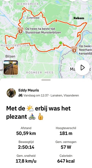 Op het einde van die straat ging ik linksaf om via de Kewithstraat en wat mooie paarden, nog 'n lus te nemen via de Eikelenweg. Voor ons zit de actieve dag erop. Dadelijk de zetel in om verder te lezen in 'n spannend boek. Morgen ga ik normaal gezien fietsen. Mijn route is Maastricht - Valkenburg - Cadier en Keer - Veldwezelt. Onderweg liggen er enkele heuveltjes, uiteraard mijn ding.