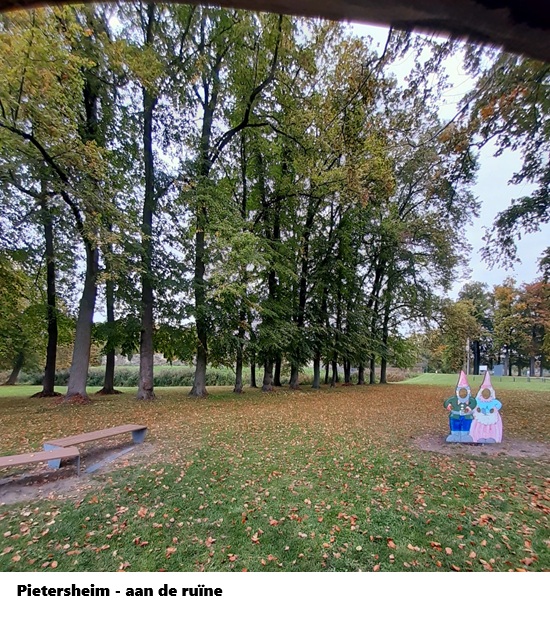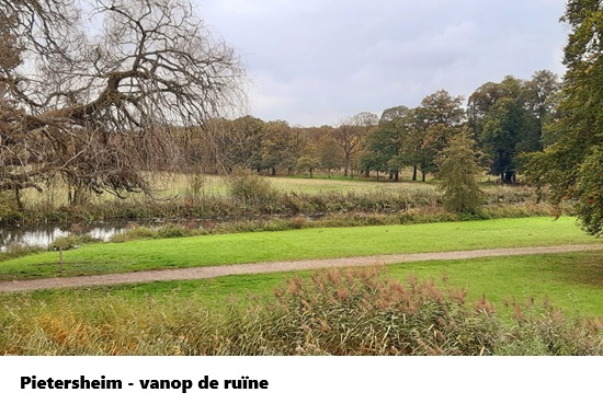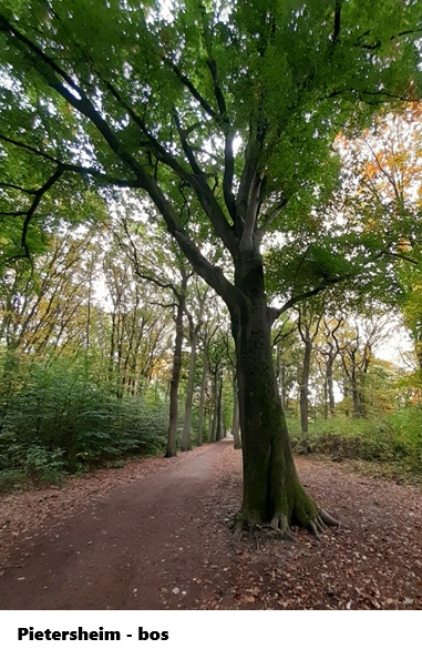 Mijn wandeling ging vandaag naar Pietersheim. Eerst doorheen de Kinderboerderij, daarna langs de visvijver om vervolgens via het bos naar de burchtruïne te stappen. En dat deze week het bos centraal staat in de scholen, dat was goed te zien. Het bos was vol met kinderen en allemaal kregen ze deskundige uitleg van hun juf of meester.