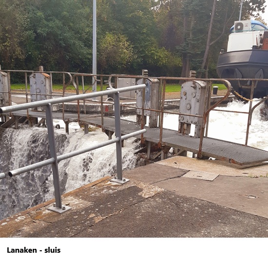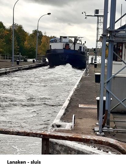 Ik vervolgde mijn weg via de sluis van Neerharen en de brug van Tournebride langs het Verbindingskanaal. Aan de sluis in Lanaken had ik het geluk dat er juist 'n schip versast werd. Dat ging vrij vlot, ook al is er 'n flink niveauverschil tussen beide sluisdeuren. In Lanaken waren ze op de Stationsstraat de voorbereidingen aan het treffen voor de avondmarkt deze avond.