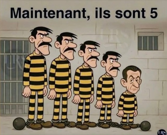 En die laatste afbeelding, die kwam ik ergens tegen op fb. Nicolas Sarkozy, voormalig president van Frankrijk is laag gevallen al vertoeft hij in 'n luxecel met politiebewaking in de naburige cel. Hij is intussen 70 jaar en stamt af van lage adel in het toenmalige Oostenrijk-Hongarije.