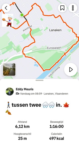 Het was deze voormiddag echt uitkijken naar het meest geschikte moment om mijn neus buiten te steken. De regen beheerste deze ochtend al en in de loop van de voormiddag zou het opnieuw gaan regenen. Uitzonderlijk diende ik vandaag weer naar de bakker te gaan. Onze kleinzoon komt logeren en die gasten kunnen op hun leeftijd wat boterhammen en broodjes verzetten. Het was dus nodig om genoeg in huis te hebben.