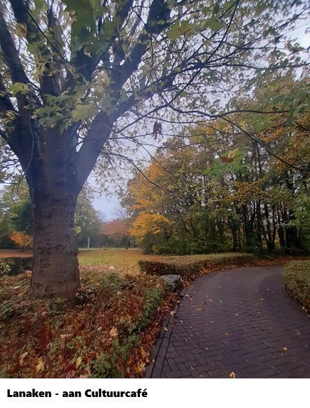Ook in het Uilenstraatje is het volop herfst. Op dat punt wilde ik nog 'n ommetje maken maar de volgende bui noopte mij toch tot 'n snelle terugkeer. Het is dus gebleven bij 'n wandeling van iets meer dan 6 km. Geen probleem, een der volgende dagen maak ik weer 'n langere wandeling.