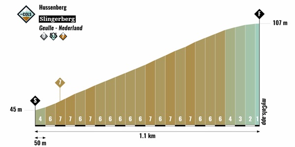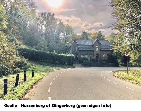 Daarna fietste ik de Hussenberg of de Slingerberg over. Het is geen al te moeilijke helling, iets meer dan 1,1 km. en 'n max. stijging van +/- 8%. Wat verderop in Moorveld, 'n klein dorpje horende bij Meerssen, hield mij 'n andere wielertoerist aan, hij vroeg de weg naar Stein. Dat was niet moeilijk, ik kwam er juist van.