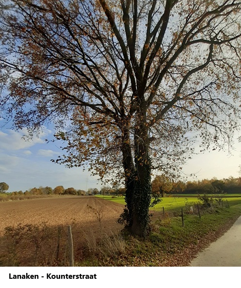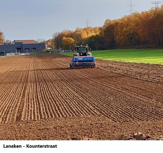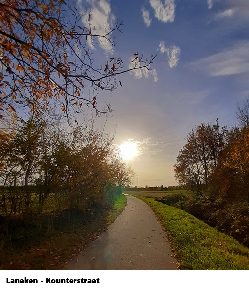 Ik vertrok na de koffie om via de Hoenderbroekstraat te wandelen naar de Pastoorslindestraat. Die straat volgde ik tot aan de straat met de speciale naam “Op de Puin”. Wat verderop ligt dan de Kounterstraat. Met de zon in het gelaat, was het weer wat experimenteren met het maken van ’n goede foto. En de boer, die is volop zijn velden aan het klaar maken voor de winter.