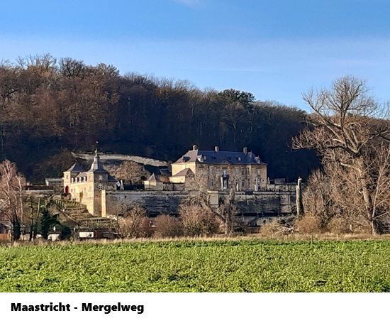 Ik fietste om te beginnen naar Briegden om daar naar het jaagpad langs het Albertkanaal te rijden. Daar zag je nog goed de vrieskoude. En dan was het gewoon doorfietsen tot Kanne om daar de brug over te steken. Ik koos vandaag de route naar Maastricht met op de achtergrond het Château van Neercanne. En dat de zon van de partij was, dat zie je aan mijn foto's. Het was fijn fietsen langs rustige wegen met mooie vergezichten en veel natuur.